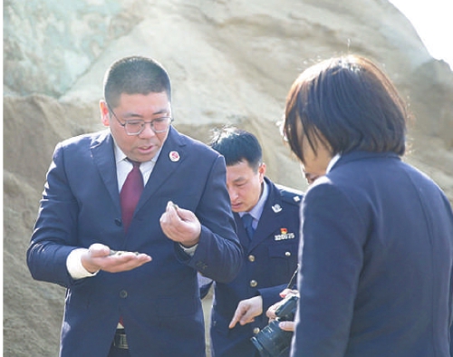 办案检察官和侦查人员调查核实江砂资源损失情况