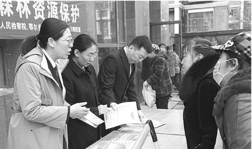 公益保护观察员和检察官一起开展公益诉讼宣传活动
