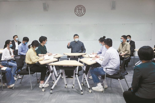 4月25日上午,中共中央总书记、国家主席、中央军委主席习近平来到中国人民大学考察调研。这是习近平同师生代表座谈并发表重要讲话。 新华社记者谢环驰摄