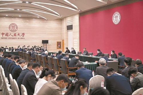 在认真听取大家发言后,习近平发表重要讲话。他强调,我国有独特的历史、独特的文化、独特的国情,建设中国特色、世界一流大学不能跟在别人后面依样画葫芦,简单以国外大学作为标准和模式,而是要扎根中国大地,走出一条建设中国特色、世界一流大学的新路。中国人民大学从陕北公学成立之初就鲜明提出要培养“革命的先锋队”,到新中国成立之初提出培养“万千建国干部”,到改革开放新时期提出培养“国民表率、社会栋梁”,再到新时代提出培养“复兴栋梁、强国先锋”,始终不变的是“为党育人、为国育才”,展现了“党办的大学让党放心、人民的大学不负人民”的精神品格。希望中国人民大学落实立德树人根本任务,传承红色基因,让听党话、跟党走的信念成为人大师生的自觉追求。