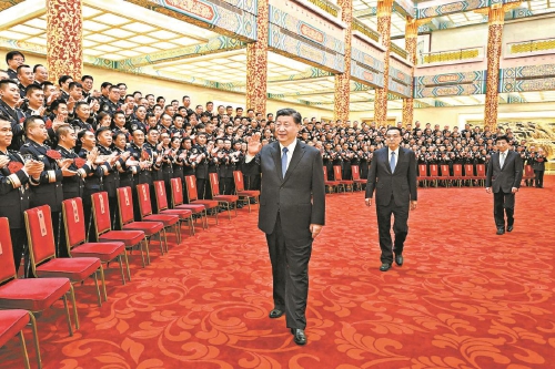 5月25日,党和国家领导人习近平、李克强、王沪宁等在北京人民大会堂会见全国公安系统英雄模范立功集体表彰大会代表。 新华社记者李学仁摄