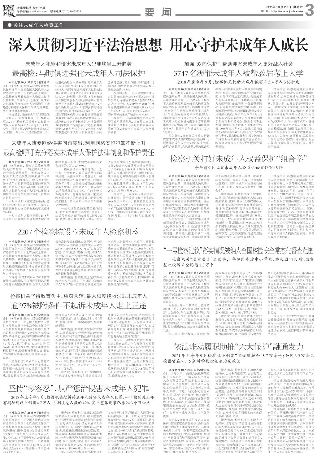 最高检呼吁充分落实未成年人保护法律制度和保护责任