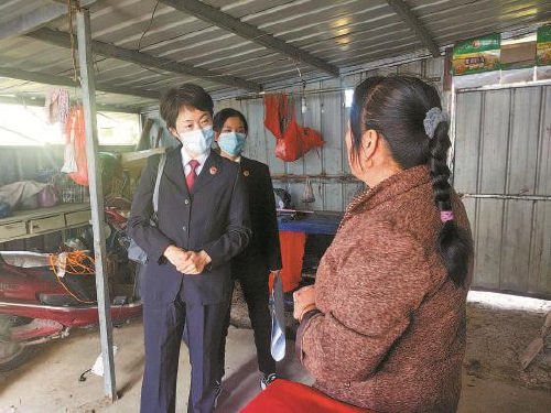 今年9月,安徽省合肥市蜀山区检察院受理一起公安机关移送的涉嫌虐待儿童案件。家住农村的犯罪嫌疑人代某长期殴打、囚禁两名共同生活的未成年儿子,致轻伤二级两处、轻微伤两处,手段残忍,涉嫌虐待罪。10月12日,此案审查起诉期间,为核实案情、固定证据,该院两名未检检察官来到案发地进行实地调查,并向当地村民宣传侵害未成年人案件强制报告制度。10月28日,蜀山区检察院以代某涉嫌虐待罪、重婚罪向法院提起公诉。目前,该案正在进一步审理中。图为检察官走访涉案证人。 本报记者吴贻伙 通讯员黄河摄