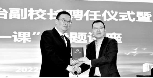 西安市临潼区检察院检察长李文凯(左)前往临潼中学参加法治副校长聘任仪式暨“法治第一课”专题讲座。 李繁/摄