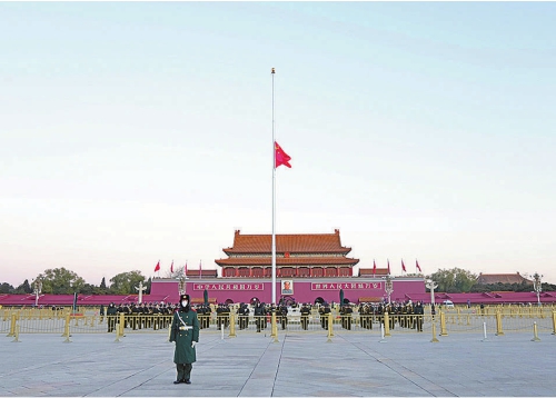 12月1日,北京天安门下半旗志哀,悼念江泽民同志逝世。 新华社记者才扬摄