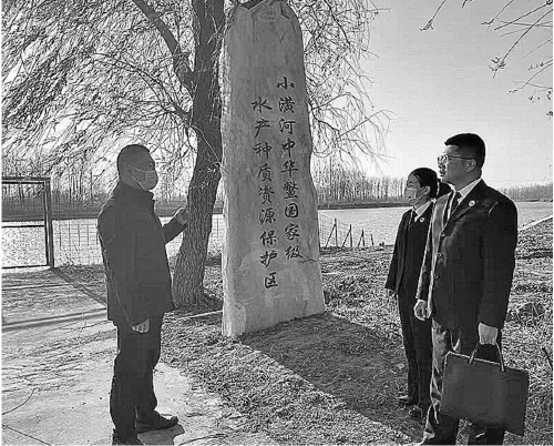 潢川县检察院检察官在中华鳖国家级水产种质资源保护区回访增殖放流情况。