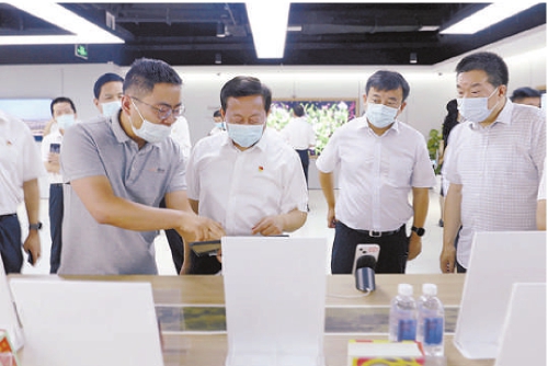 7月18日,陕西省检察院党组书记、检察长王旭光(右三)在秦创原入驻企业调研创新驱动发展情况。