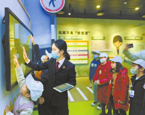 “开营啦!”1月13日,一场由重庆市检察院第一分院、该市潼南区检察院与四川省遂宁市检察院、该市安居区检察院联合举办的法治冬令营活动,在重庆市检察院青少年法治教育基地拉开序幕。检察官带领川渝两地40名留守儿童,“沉浸式”体验了虚拟骑行、模拟法庭等互动普法项目。 本报记者满宁 通讯员苏琪惠摄