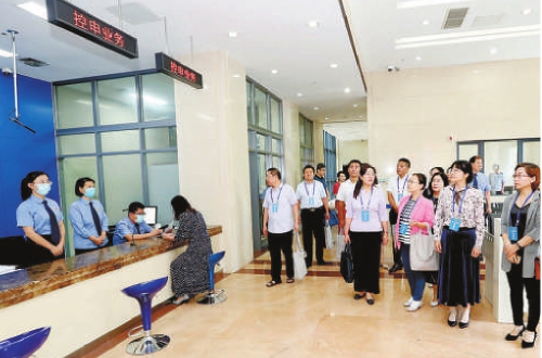 2020年,王雪梅(右二)参加山东省检察院组织的调研活动。图为王雪梅和其他代表参观该院12309检察服务中心。