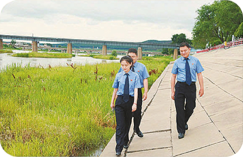 宁安市检察院干警对镜泊湖下游河流进行巡查。