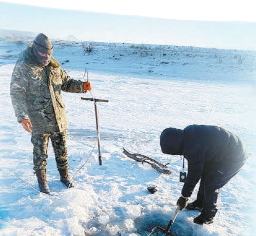 “黑瞎子岛水域是常年禁捕区,禁止捕捞作业。我们调查发现,仍有渔民抱有侥幸心理,把冰眼隐藏起来非法捕捞。2022年,整个冰封期我们来了6次,查获渔网100多张。”在一处露着半截木棍的冰面上,王浩合告诉记者,木棍连着的这根绳下面就是渔网,冰眼就藏在旁边的雪下。果不其然,我们扫开周围的雪,用“冰穿”破开冰眼,顺绳从中拉起一串长筒形状的渔网。