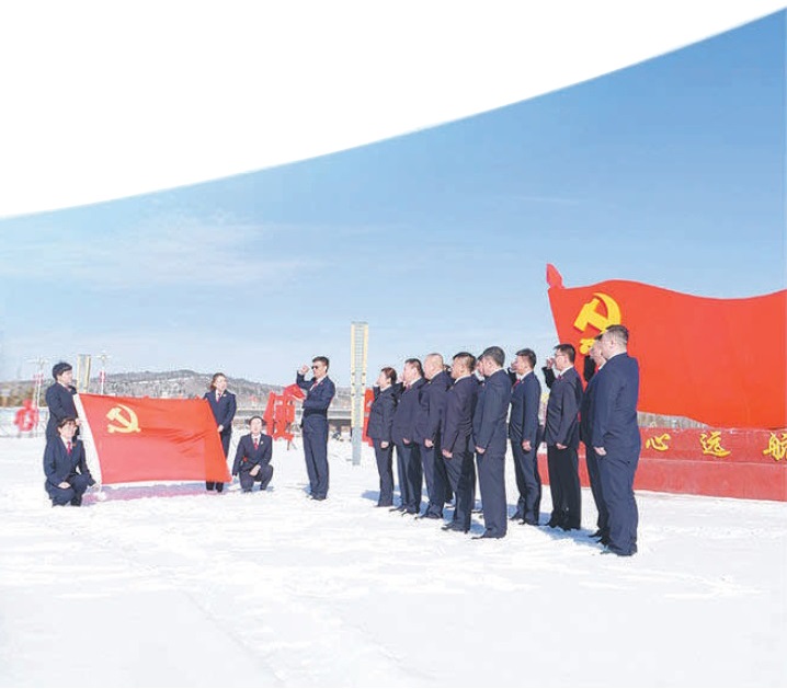 漠河市检察院党支部举行主题党日活动,在冰雪中宣誓。