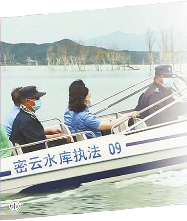 图①:密云区检察院第六检察部与密云水库综合执法大队开展党建共建活动,共同巡查水库。