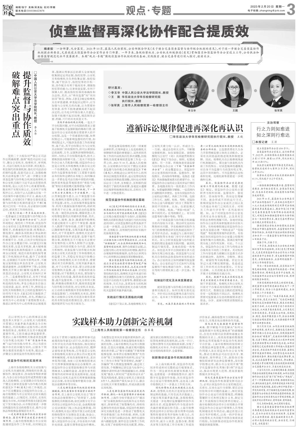 侦查监督再深化协作配合提质效