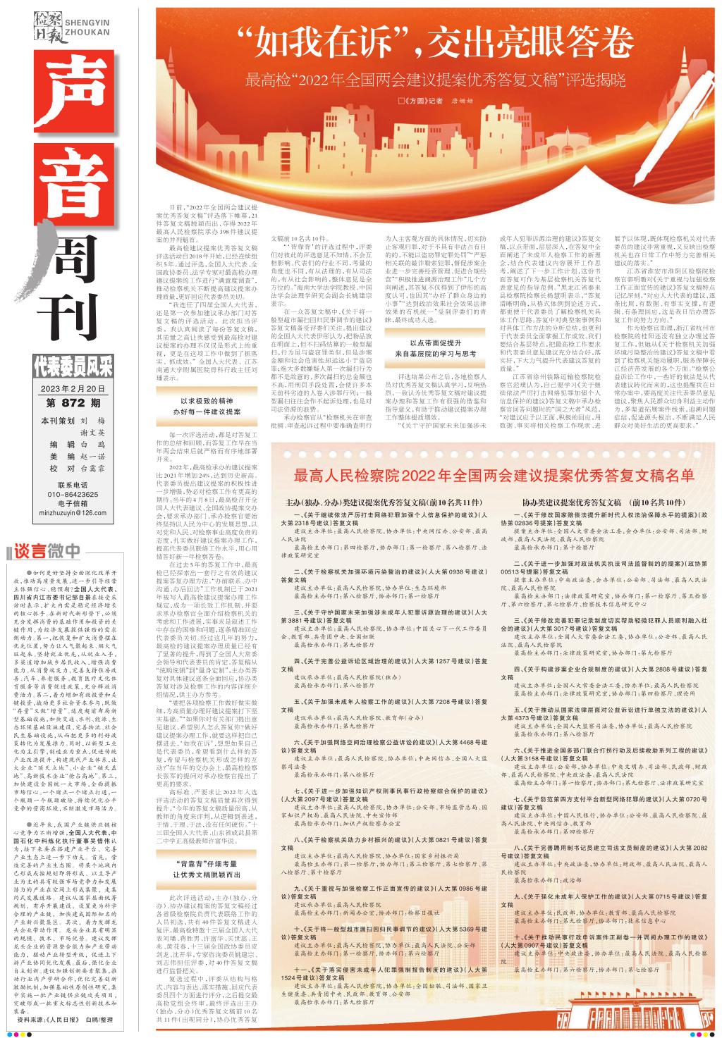 最高人民检察院2022年全国两会建议提案优秀答复文稿名单