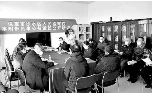 近日,河北省保定市徐水区检察院在案发地对一起非法猎捕鸟类刑事附带民事公益诉讼案进行公开听证,并以案释法,提升村民的法治意识。 本报记者肖俊林 通讯员谢超摄