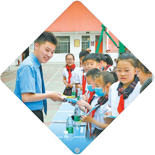 图②:利辛县检察院检察官向孩子们赠送法治图书。