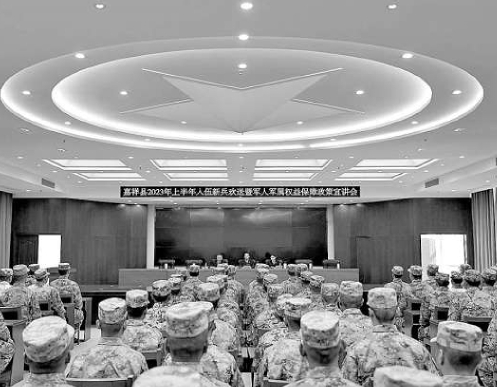 近日,山东省嘉祥县武装部邀请该县检察院检察官为刚入伍的新兵送上法治“第一课”,助力他们走好军旅青春路。