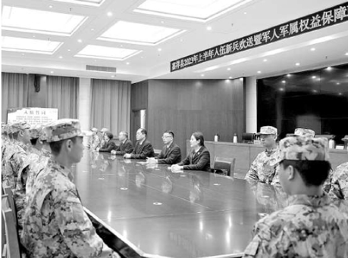 检察官与入伍新兵座谈,现场解答新兵们提出的涉法问题。