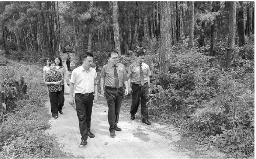 6月28日,贵州省仁怀市检察院党组书记、检察长缪荣红(中)一行到高大坪镇开展生态环境保护调研工作。