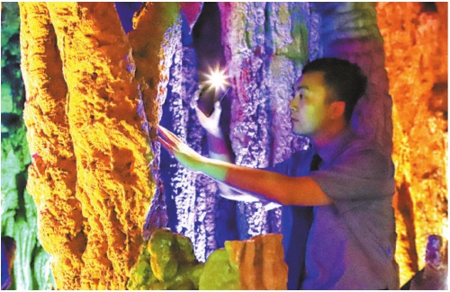 绥阳县检察院干警在亚洲第一长洞双河溶洞查看溶洞保护情况。