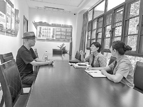 在办理一起民事检察监督案件时,检察官接访申诉人家属,倾听申诉人家属的诉求。(资料图片)