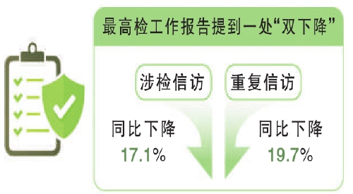 全国人大代表,河北省灵寿县南营乡车谷砣沟域联合党总支书记、车谷砣村党支部书记兼村委会主任陈春芳关注到,最高检工作报告提到一处“双下降”——深化信访矛盾源头治理三年攻坚行动,开展化解矛盾风险、维护社会稳定专项治理,涉检信访、重复信访同比分别下降17.1%和19.7%。