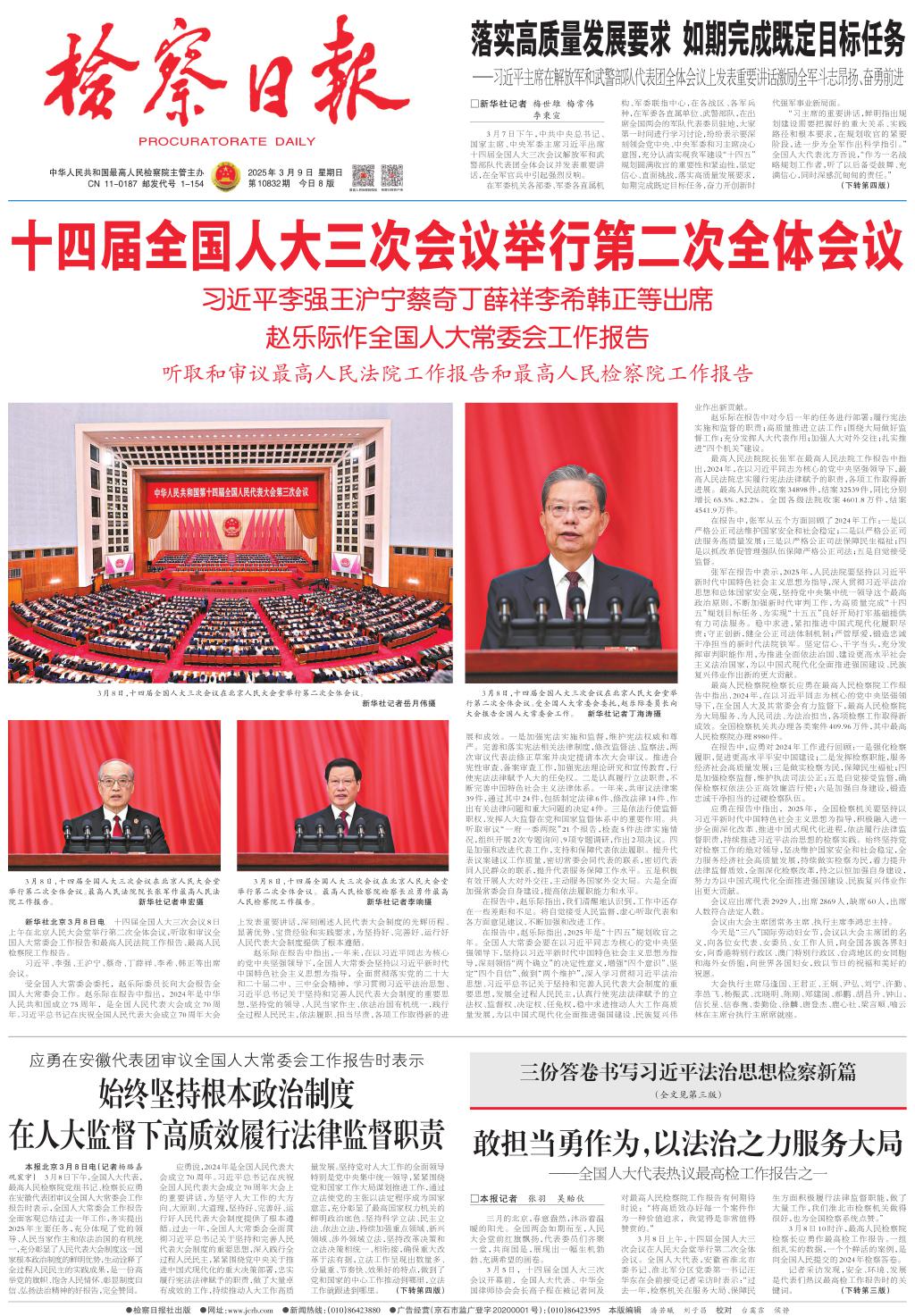 2024年检察机关办理全国人大代表建议214件、全国政协提案84件,邀请人民监督员监督检察办案21.5万件次
