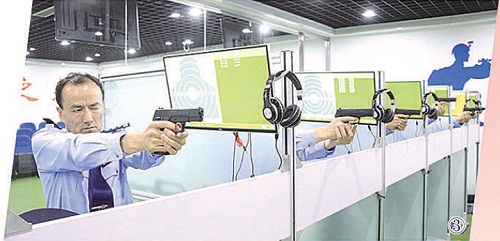 图③:参训司法警察骨干练习射击技能。