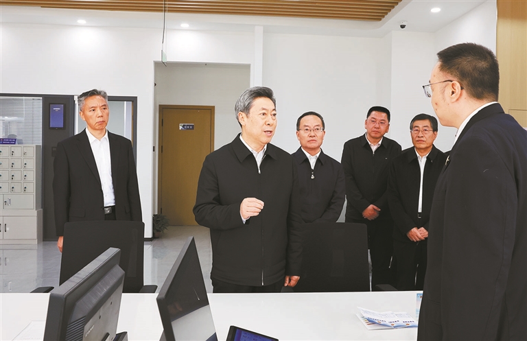 中共中央政治局委员、中央政法委书记陈文清近日在辽宁调研。图为陈文清来到辽宁省大连市沙河口区综治中心调研。李光印摄