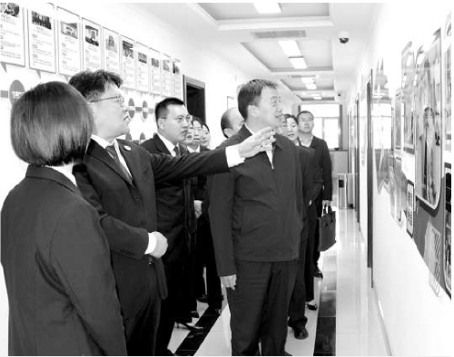 在政法队伍教育整顿期间,陕西省神木市委常委、政法委书记何树强和部分人大代表、社会群众代表受邀来到神木市检察院调研。图为参观党建文化长廊。 本报记者倪建军 通讯员薛金金摄