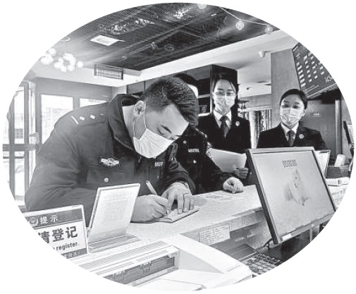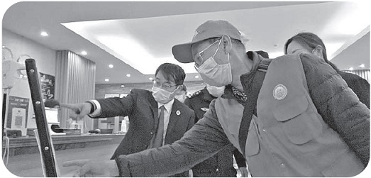辽宁省兴城市检察院的检察官,会同相关部门、相关人员对辖区旅馆强制报告制度落实情况进行检查。