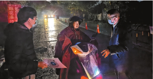 2月6日晚,广西壮族自治区百色市检察院疫情防控工作组成员冒着寒风暴雨在右江区东笋路卡口执勤,对过往车辆进行登记检查。 本报记者邓铁军 通讯员郑玫摄