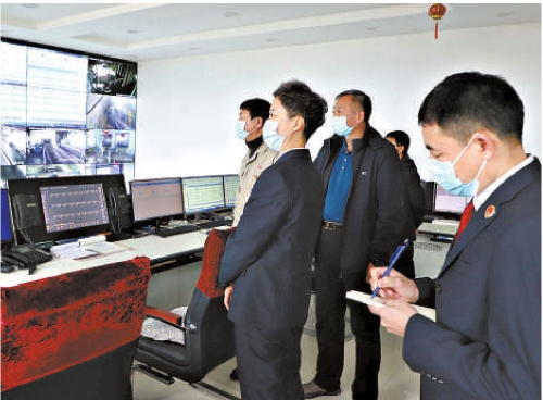 牙克石市检察院检察官查看某煤炭公司安全监测监控系统、井下人员定位系统。 本报记者于莹莹 通讯员孙波摄