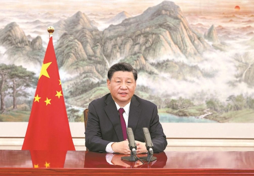 4月21日上午,博鳌亚洲论坛2022年年会开幕式在海南博鳌举行,国家主席习近平以视频方式发表题为《携手迎接挑战,合作开创未来》的主旨演讲。 新华社记者黄敬文摄