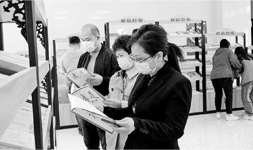 本报讯(记者何海燕)4月20日,新疆维吾尔自治区检察院“喜迎二十大 书香润检察”首届读书节活动开幕。在该院办公楼大厅里,近50种书刊整齐摆放在书架上,大家纷纷驻足阅读。