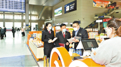5月13日,济南铁路运输检察院联合铁路食品安全监督管理部门开展食品安全领域行政公益诉讼案“回头看”活动,对站内候车场所餐饮、食品供应和安全保障等情况进行监督。图为该院检察官与铁路食品安全监督管理人员在济南站候车室餐饮摊点走访调研。 本报记者卢金增 通讯员米山摄