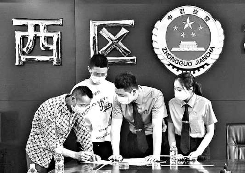 随后,大渡口区检察院与攀枝花市西区检察院、区司法局、犯罪嫌疑人及其法定监护人等四方共同签署《附条件不起诉监督考察协议》,三人的监督考察期分别为7个月至9个月不等。