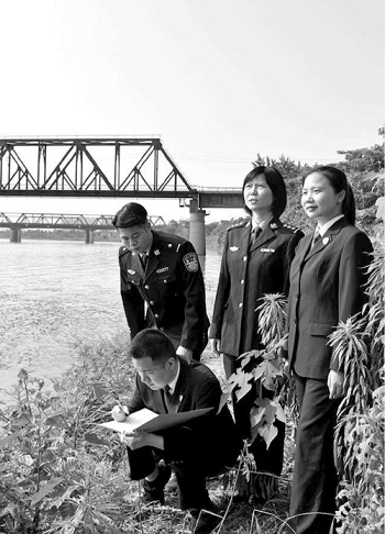 衡阳铁路运输检察院严格落实汛期安全生产预案,对辖区内铁路沿线开展防洪防汛安全专项监督。图为5月20日,该院检察官到耒河跨河铁路桥周边开展防汛安全专项监督。 本报记者张吟丰 通讯员周承捷 彭祝成摄
