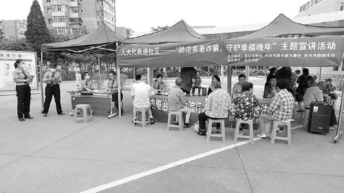 7月5日,内蒙古自治区包头市昆都仑区检察院邀请市、区两级人大代表走进居民小区,以“防范养老诈骗,守护幸福晚年”为主题,开展打击整治养老诈骗宣传活动。 本报记者沈静芳 通讯员刘艳摄