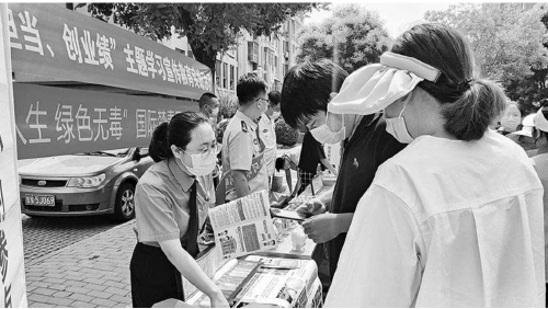 近日,天津市检察院第三分院干警通过深入社区开展禁毒宣传、组织在校学生线上观摩走私毒品案件庭审、电话回访缓刑考验期的涉毒人员等方式,进一步增强全民识毒防毒拒毒意识。 本报通讯员任辉 李希龙摄