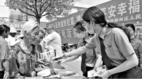 近日,湖北省襄阳市襄州区检察院干警前往当地石桥镇开展防范养老诈骗宣传活动,通过发放、讲解宣传册,现场答疑等方式,向老年人介绍目前养老诈骗新形式。 本报记者戴小巍 通讯员吴一帆摄