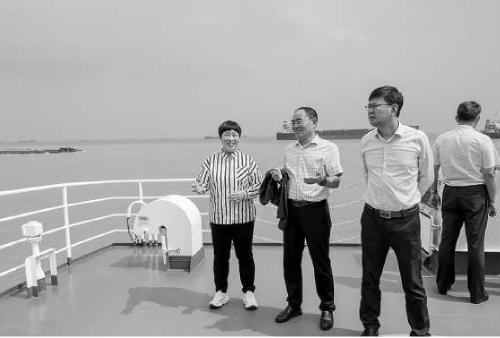 代表委员登船查看长江太仓段生态环境保护及发展情况。