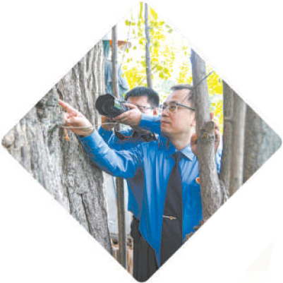 2022年9月,陕西省检察院西安铁路运输分院干警查看古树受损情况。
