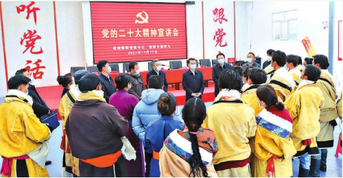 “党的二十大报告对全面推进乡村振兴、实现共同富裕作出了一系列重大战略部署,这对于推进农业农村发展,对于广大农牧民增收致富、创造美好生活至关重要……”11月17日,青海省检察院党组书记、检察长查庆九赴河南蒙古族自治县乡村振兴联系点,向群众宣讲党的二十大精神。 本报记者王丽坤 通讯员孙丽丽摄