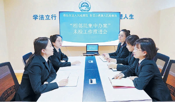 图为海拉尔区检察院和陈巴尔虎旗检察院“相邻院集中办案”未检工作推进会现场。