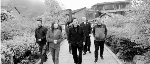 2022年3月24日,时任贵州省检察院副检察长杨承志(前右一)到镇宁县考察古村寨保护情况。