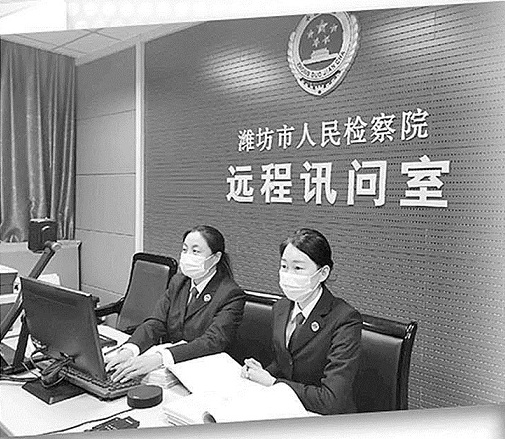 潍坊市检察院第一检察部干警进行远程提审。
