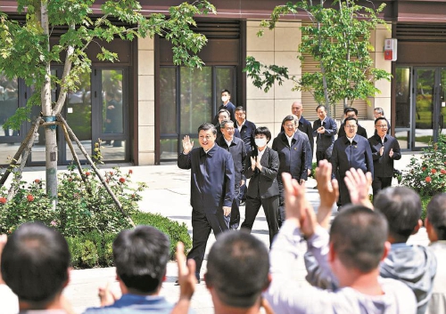 5月10日,中共中央总书记、国家主席、中央军委主席习近平在河北省雄安新区考察,并主持召开高标准高质量推进雄安新区建设座谈会。这是10日上午,习近平在容东片区南文营社区考察时向社区居民挥手致意。 新华社记者殷博古摄