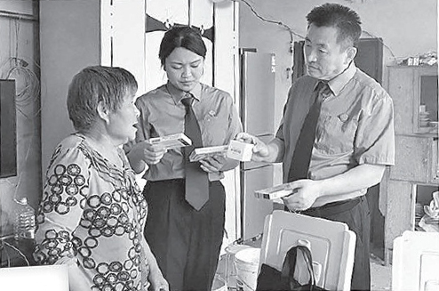 河北省涞源县检察院检察官回访刘某,了解其病情及用药情况。